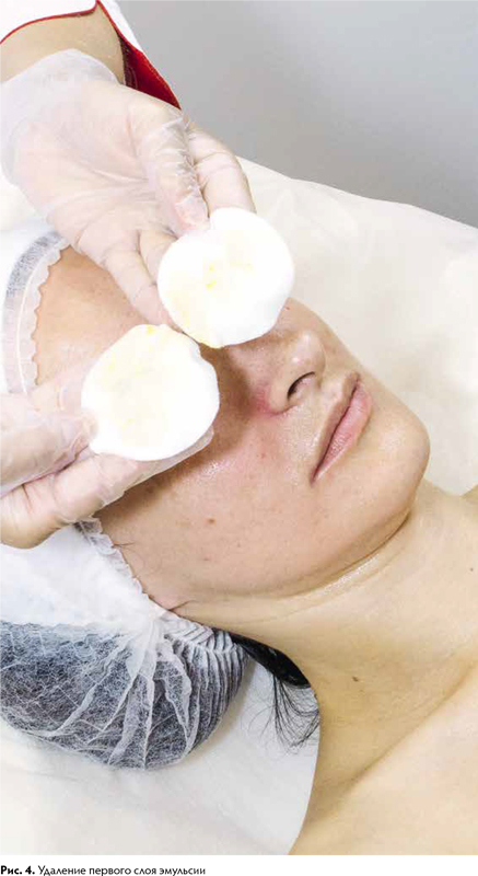 В завершение процедуры остатки эмульсии удаляются сухими ватными дисками.