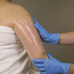 Шаг четвёртый — нанесение крема и его окклюзия под плёнку. Через 10 – 15 минут после пилинга нанесите крем из линии постпилингового ухода Skin Tech. Крем подбирается для решения проблемы, с которой обратился пациент: фолликулярный гиперкератоз, акне или гиперпигментация.