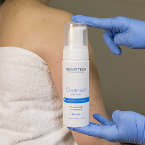 Шаг первый — подготовка и очищение кожи. Очищение кожи должно проводиться специально разработанным «Очищающим средством»/Cleanserот Skin Tech двукратно, после чего средство смывается тёплой водой, кожа высушивается бумажными салфетками.